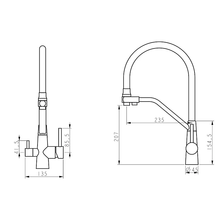 Отримайте AI поради по Змішувач для кухні Lidz Aria 020F3 з гнучким виливом з підключенням для питної води LDARI020F3BLA39212 чорний матовий