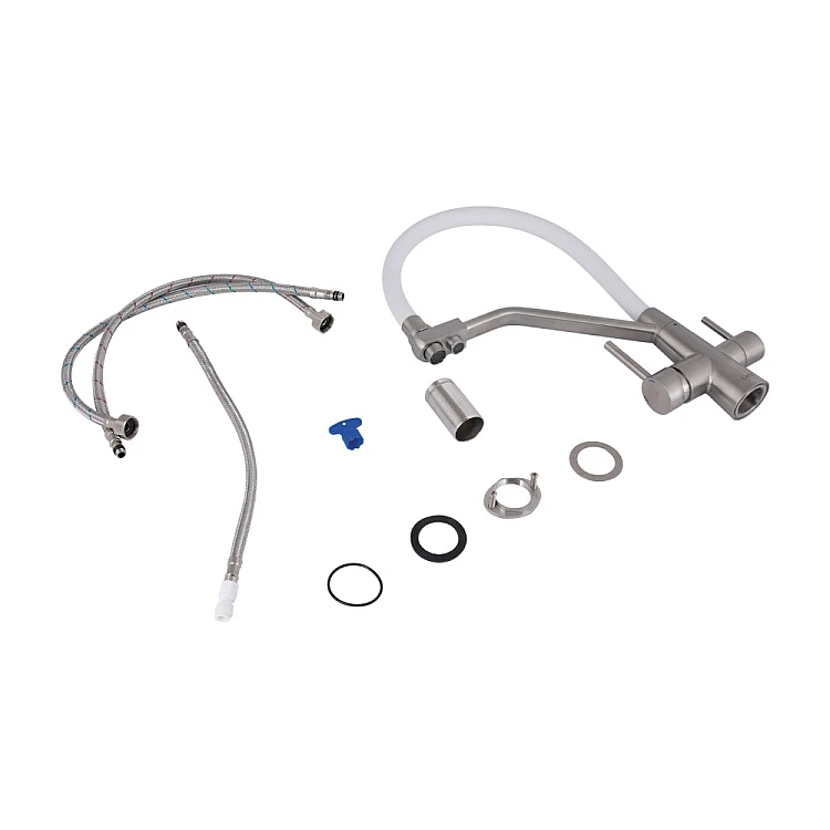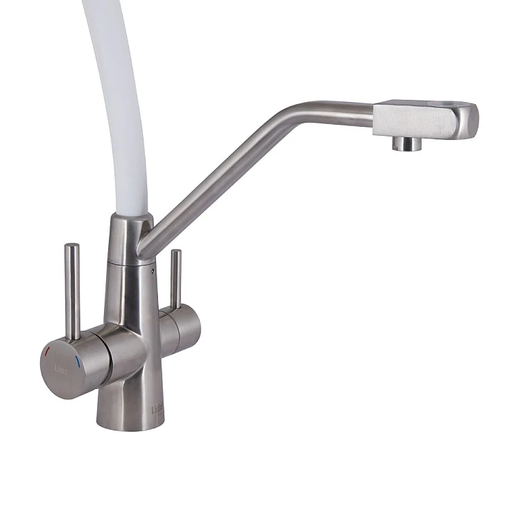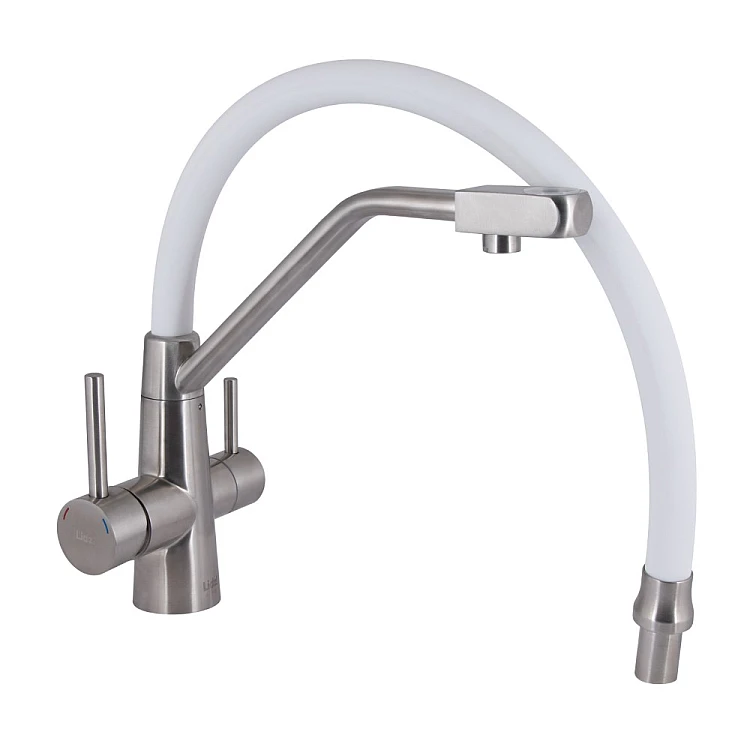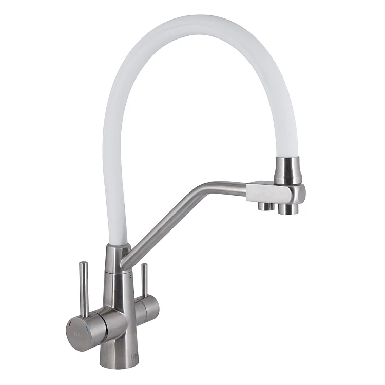 Отримайте AI поради по Змішувач для кухні Lidz Aria 020F3 з гнучким виливом з підключенням для питної води LDARI020F3WNK39480 білий/нікель