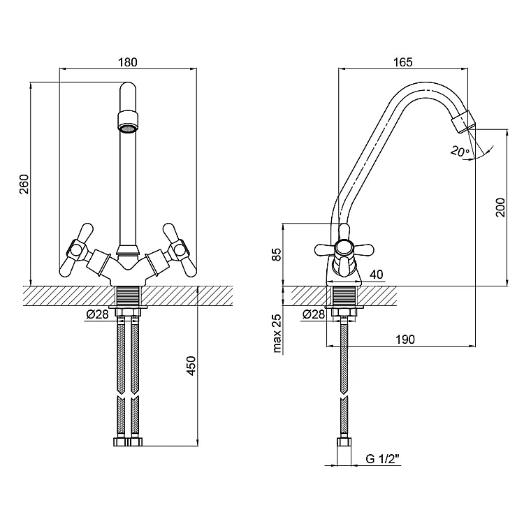 Змішувач для кухні Lidz Dominox 271F двохвентильний LDDOM271FCRM35535 хром