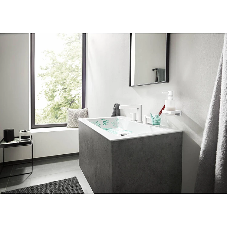 Отримайте AI поради по Змішувач для умивальника на 3 отвори з донним клапаном push-open Matt White HANSGROHE Finoris 110 76033700