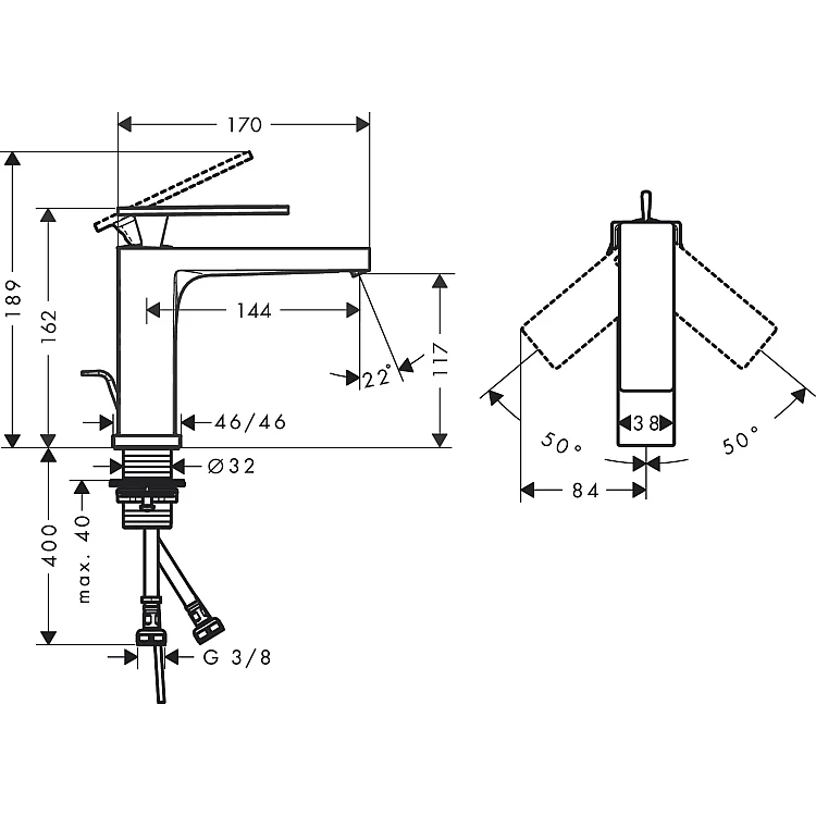 Отримайте AI поради по Змішувач для умивальника pop-up Hansgrohe Tecturis E 110 73010140 Brushed Bronze