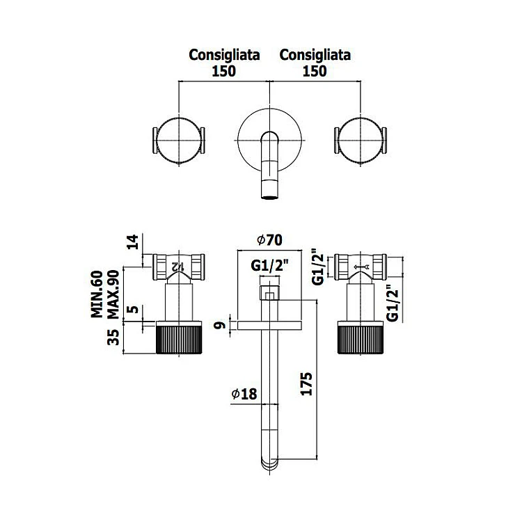 Змішувач для умивальника прихованого монтажу на 3 отвори L175 мм Paffoni JO JO003CR хром