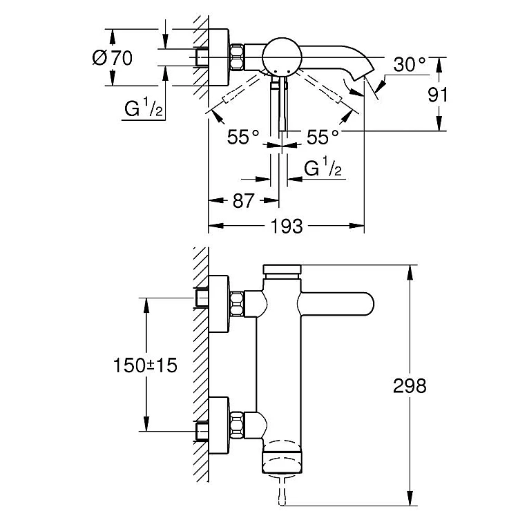 Змішувач для ванни Grohe Essence 25250KF1 чорний матовий