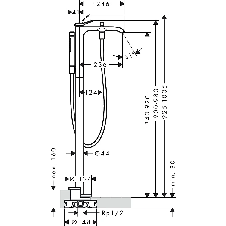 Змішувач для ванни підлоговий Matt Black HANSGROHE Vivenis 75445670
