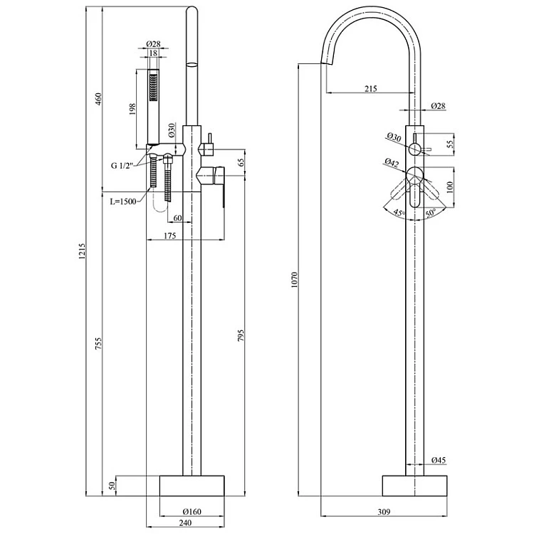 Змішувач для ванни, який стоїть окремо Kroner KRP Edelstahl Klassisch-SCH077 створений з урахуванням зовнішнього вигляду та функціональності, є альтернативою класичним змішувачам для ванної кімнати. Виготовлений із харчової нержавіючої сталі SUS 304, що забезпечує довговічність та безпечність в експлуатації виробу. Змішувач оснащений керамічним картриджем діаметром 35 мм, що забезпечує плавне регулювання температури та напору за допомогою важеля. Оснащений перемикачем ванна/душ, відведенням для приєднання душового шланга діаметром 1/2". Монтується на один отвір за допомогою гнучких підводок підключенням 1/2".