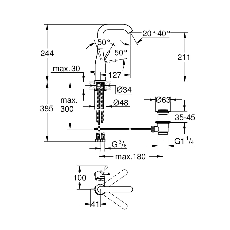 - Аератор: регульований GROHE AquaGuide