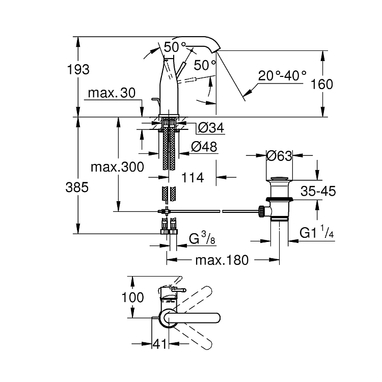 Змішувач для раковини GROHE Essence M‑Size, золото матове, 24173GN1
