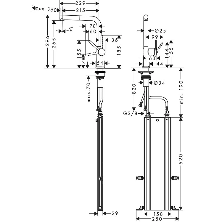 Отримайте AI поради по Змішувач кухонний з витяжним виливом Sbox Hansgrohe Talis 270 1jet 72809800 Stainless Steel