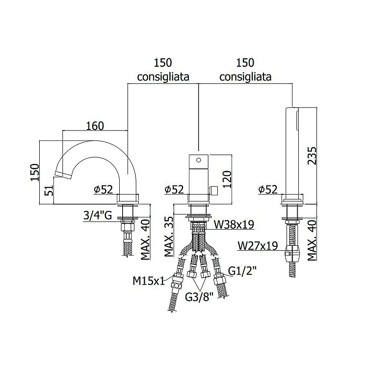 Змішувач на борт ванної з душовий гарнітуром Paffoni Light LIG040LCR хром